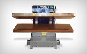 Cabeçote inferior: Em alumínio fundido retificado, com acabamento polido, possuindo borracha de silicone de alta temperatura de 10 mm de essp.